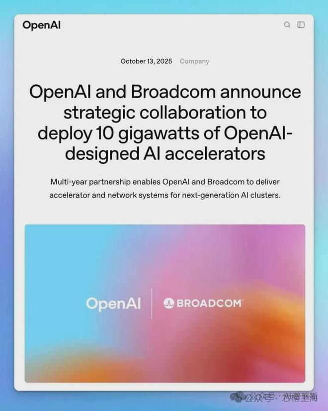 OpenAI与博通达成战略合作,将联合开发并部署10吉瓦定制AI加速器及系统。