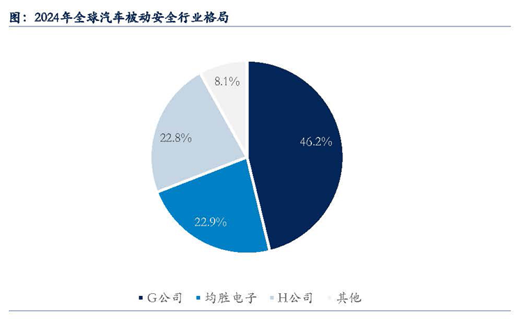 市场地位方面,均胜电子已稳居全球被动安全市场第一梯队。2024年,公司在全球被动安全市场市占率约22.9%,中国市场市占率约26.1%,均位列第二,仅次于国际龙头Autoliv。