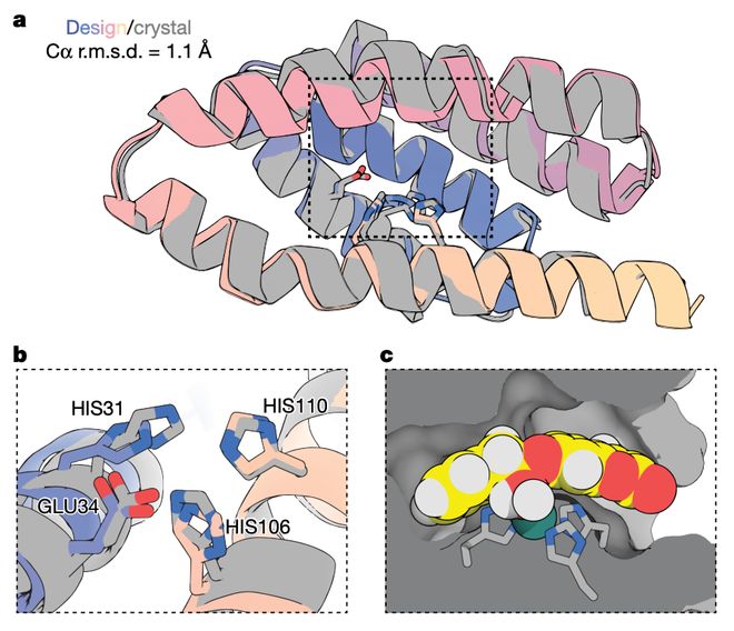金属水解酶(metallohydrolase)是自然界中催化困难水解反应的高手,它们利用金属离子激活水分子,切断底物分子中的化学键。设计这样的酶对降解人造环境污染物至关重要。