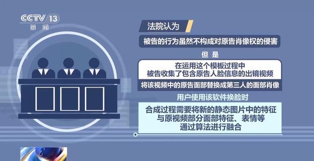 北京互联网法院副院长 孙铭溪:我们这个案件的特殊情况在于他已经运用了深度合成技术,我们通过对比音乐、妆容,还有装束、发型等等,确实能够确定是使用了原告出镜的那么一个视频。但是在使用这个视频作为模板之前,他已经将面部进行了这么一个更换,通过深度合成技术把面部进行了和原告原来面部的融合。