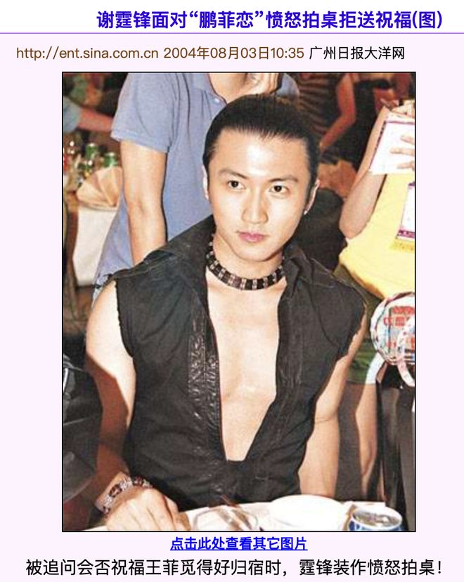 遥想当年锋菲分分合合,再加上锋芝、鹏菲,以及周边相关人员陈晓东、陈冠希、陈小春、窦唯、周迅等等的存在,网友对这段恋情持各种意见,嗑哪对的都有,况且还有后续的离婚问题、抚养孩子的问题,剪不断、理还乱,因此当事人承担的炮火是相当猛烈的。