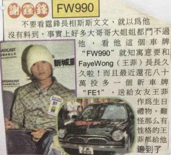 7月,谢霆锋与王菲复合,又挂出了FE1的车牌,据说谢霆锋追回女友是靠着每天一封情书(跟后来李亚鹏每天发数十条短信有异曲同工之妙。)