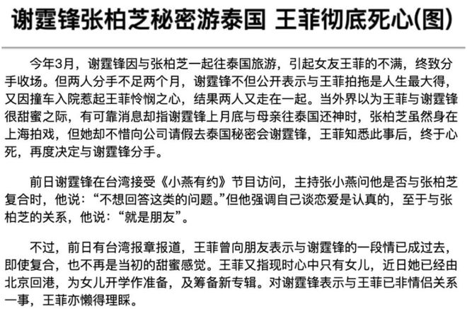 这一连串的大型“作死”事件之后,王菲就和他分手了。谢霆锋转而和张柏芝恋爱。