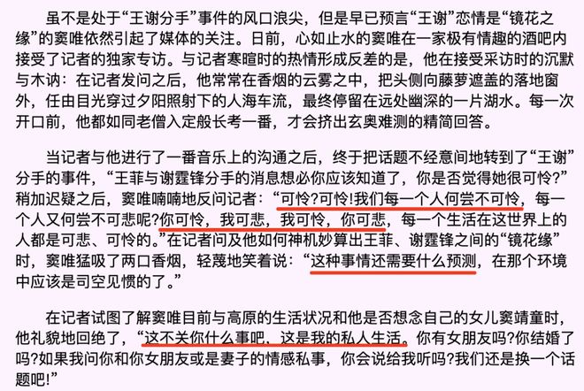 记者跑去问窦唯,你对这事怎么看?你觉得王菲可怜吗?窦唯说:你可怜,我可悲,我可怜,你可悲。(哈哈哈哈想笑)