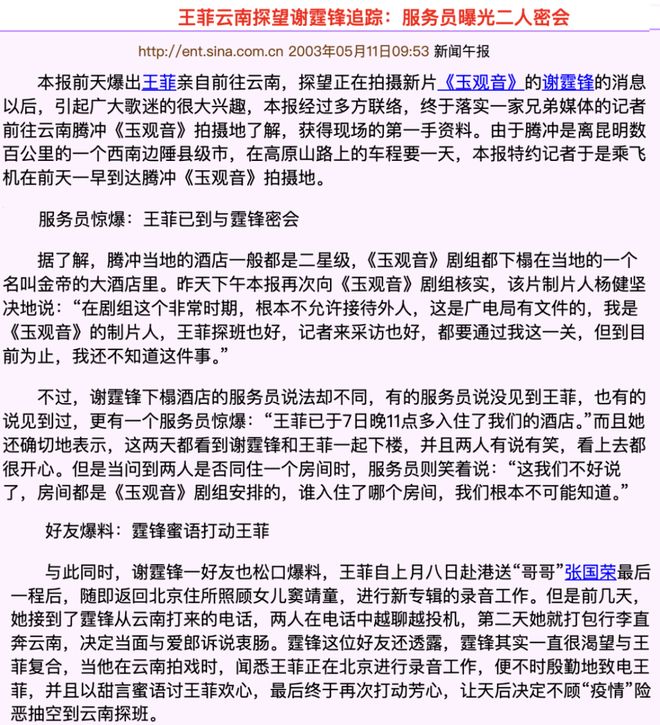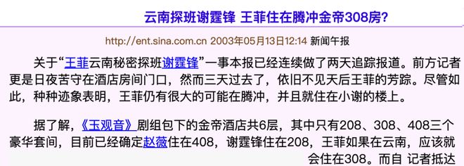 说远了哈,当时谢霆锋王菲本来是“云南密会”,但这事搞得一点也不秘密了,因为他们住的酒店全部被菲迷和记者包围,甚至连房间号都知道: