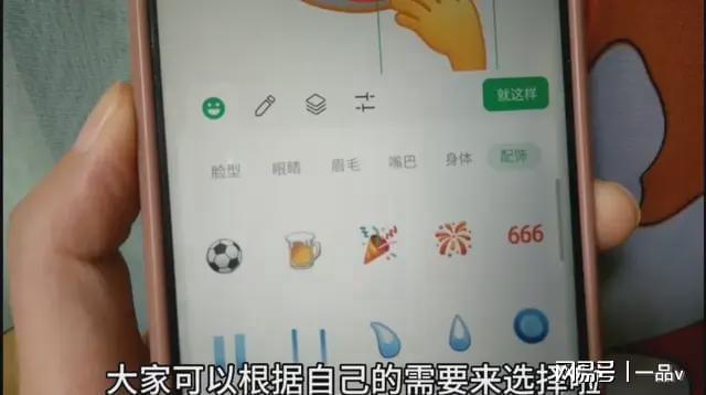 调整好了之后,再点击下方的“配饰”,选择一个好看的配饰。在这里也是有很多的,大家可以根据自己的需要来选择了。比如说我选择一个冰淇淋,那么我们也可以调整它的位置和大小,让这个冰淇淋和手看起来比较搭配一点,我们把这个冰淇淋来缩小一下,放到手的位置,是不是就更好看了呢?