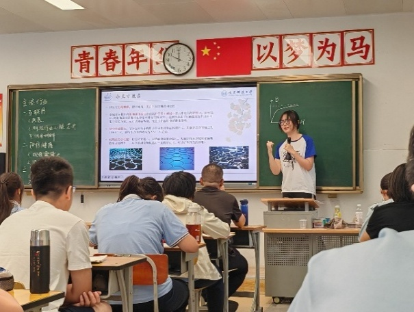 实践团积极引导学生探源传统文化,创新课程《〈红楼梦〉中的材料身影》、《非遗制瓷工艺中材料的生平》与《古布材质和染料讲解》,从古典名著和传统技艺中挖掘材料智慧;聚焦前沿科技,邀请专家讲解《纳米材料能当大功臣》,开展《北科教授的前沿发展成果和精神》讲座及连线互动,生动展示了材料科学在航空航天、芯片、绿色能源等国家战略领域的尖端突破与科学家情怀;通过观看《大先生》纪录片、教授故事分享等活动,深度传递了材料科学家“心有大我、至诚报国”的科研精神。